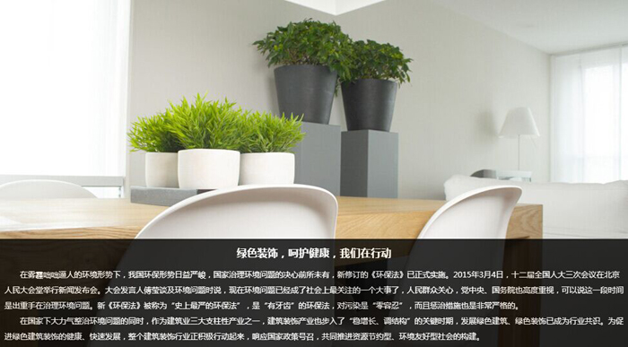 當(dāng)PM2.5、霧霾、空氣質(zhì)量指數(shù)等詞語(yǔ)越來(lái)越多地成為城市人討論的話題時(shí),一批有責(zé)任、有擔(dān)當(dāng)?shù)慕ㄖb飾企業(yè)紛紛將“綠色裝飾”定為自己的長(zhǎng)遠(yuǎn)發(fā)展目標(biāo)。