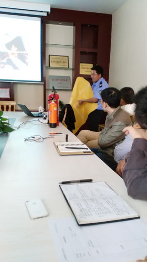 為進一步加強我公司消防安全意識,普及消防安全知識,推進家庭及公司、工程建筑消防安全宣傳工作,20151010日上午,安居消防劉教官在公司一樓會議室為我公司全體管理人員作了以“找隱患、保平安”為主題的消防安全知識培訓。
